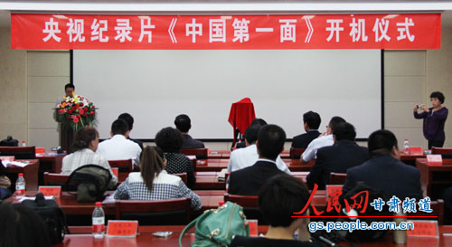 人民网兰州5月8日电(记者 王生元 实习记者 吕守奎)5月8日下午,由兰州市委市政府、城关区委区政府、兰州市广播电视总台主创的央视纪录片?中国第一面?在城关区政府举行了开机仪式。兰州市委宣传部常务副部长张正华出席仪式。