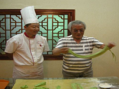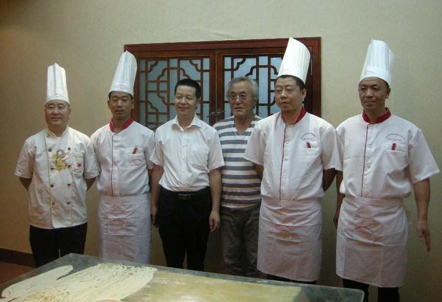 兰州烹饪协会牛肉拉面技术培训中心与日本名古屋印章株式会社 村松俊三先生在"金味德"兰州牛肉拉面总部洽谈我中心毕业学员作为拉面技师向日本输送相关事宜。