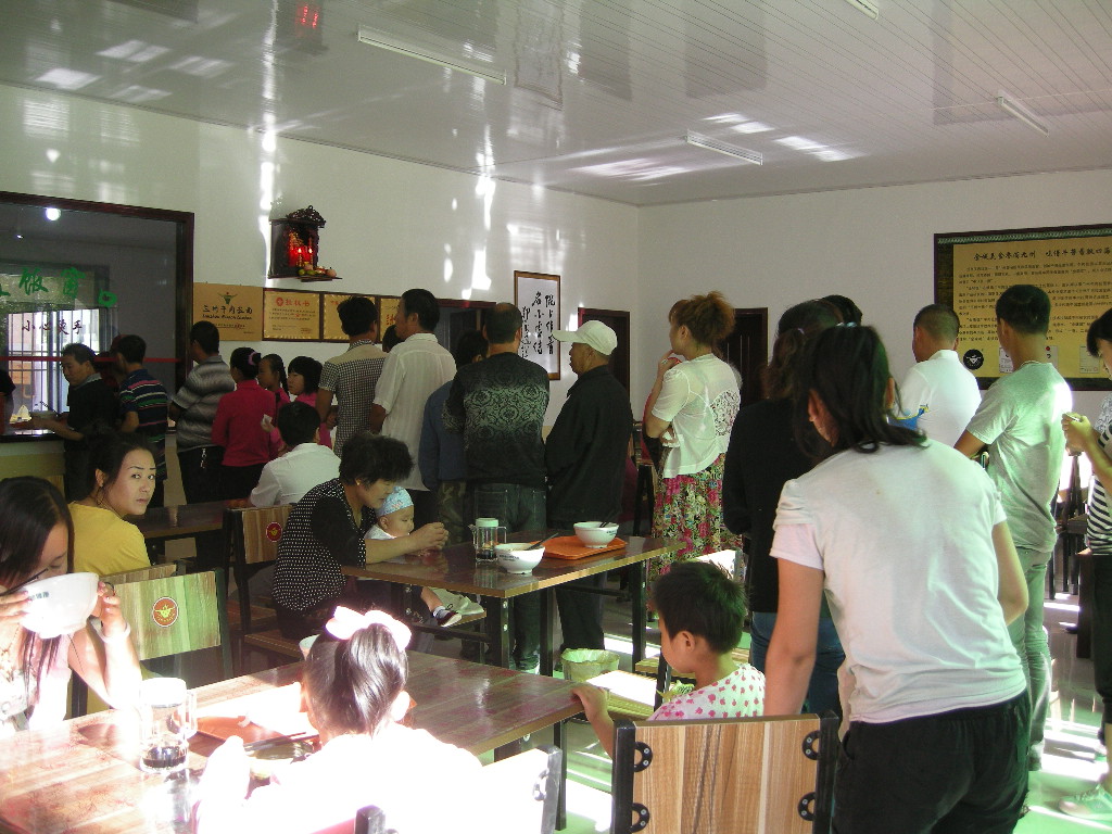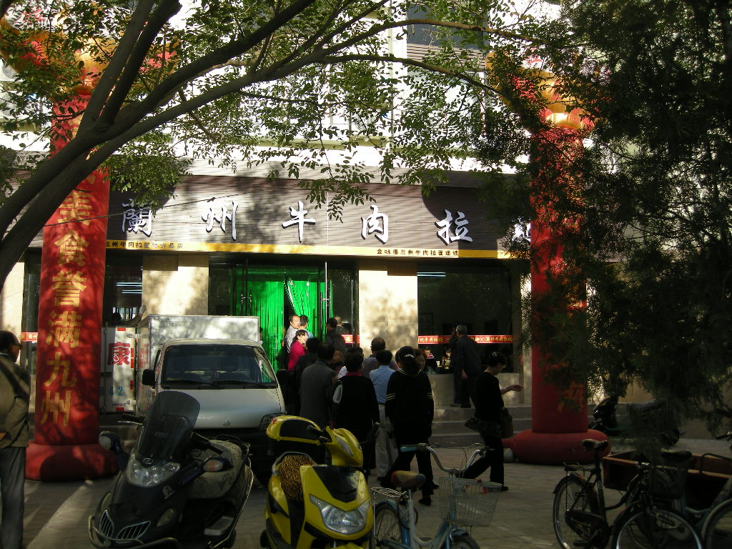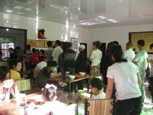 食客们拿着小票自觉的排起长队,都排到门外了,只为等待着那一碗喷香诱人的兰州牛肉拉面。