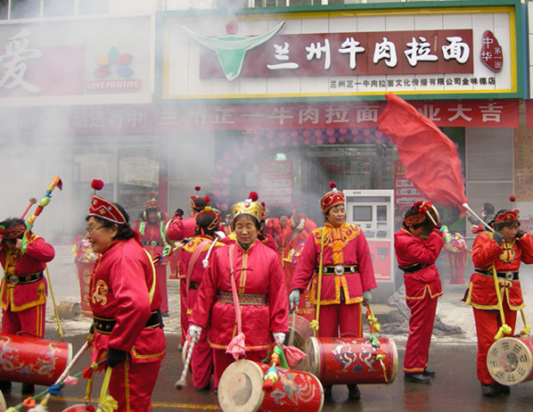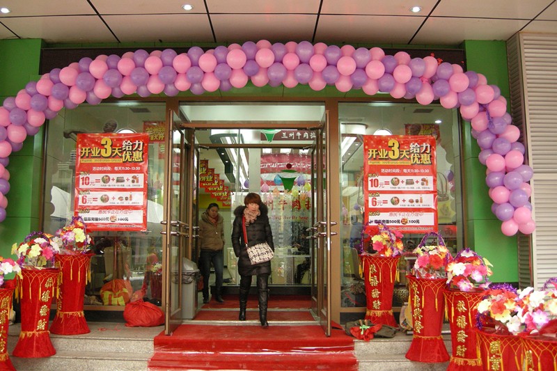 开业庆典现场可谓旌旗招展、气势恢宏、吸引了上百名观众前来参观。祝贺“兰州牛肉拉面”形象示范店金味德店开业,并祝福兰州牛肉拉面文化、事业发展得更大、更强,蒸蒸日上。