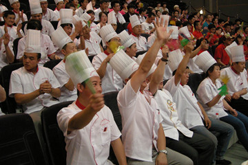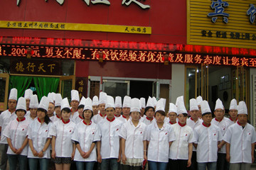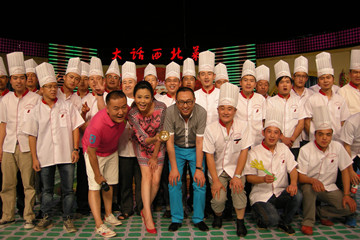 活动结束后烹饪学校所有学员与节目主持人合影留念