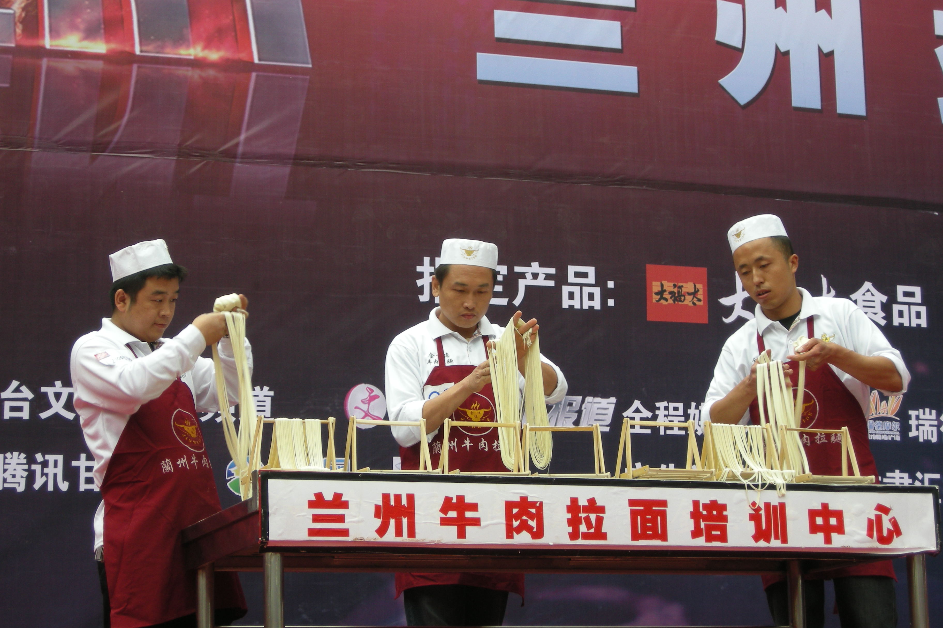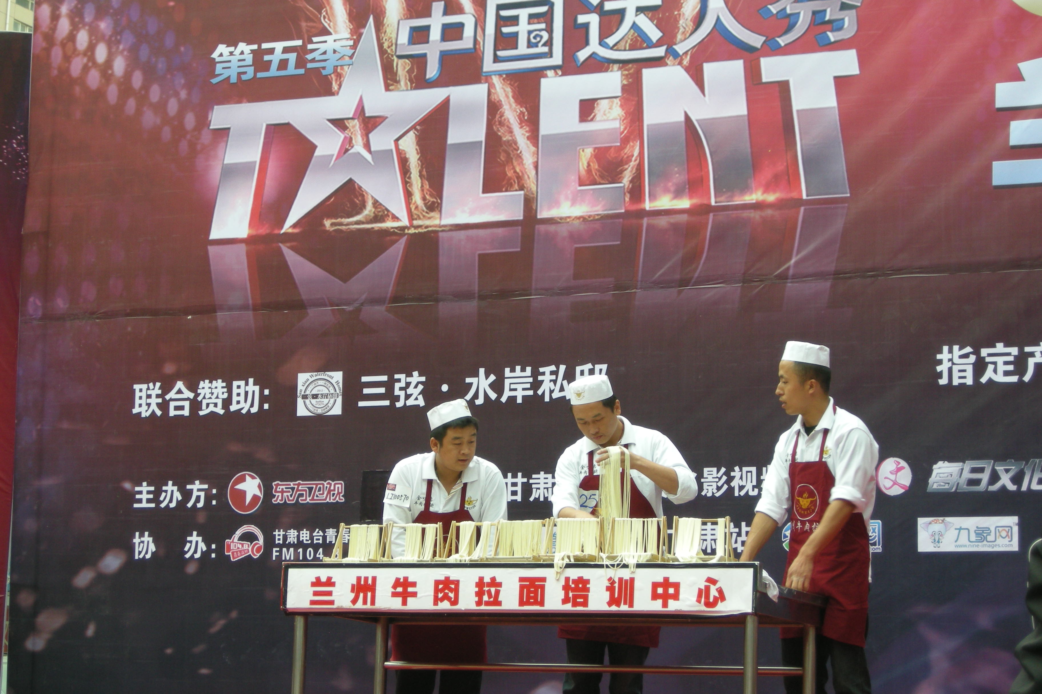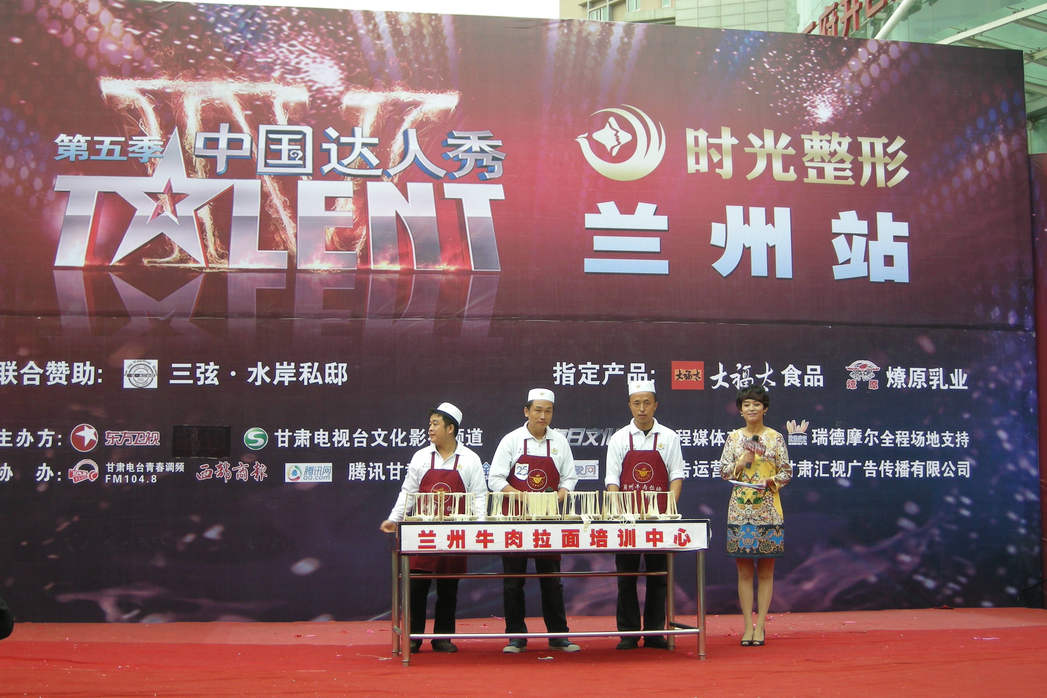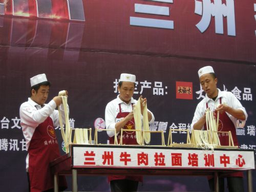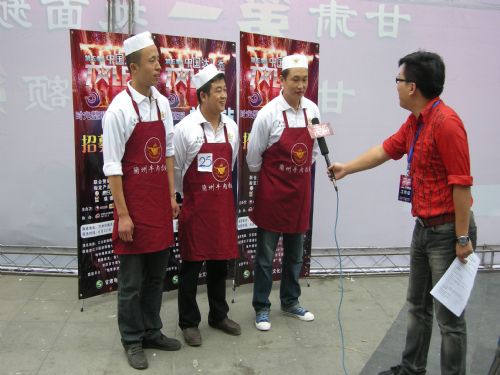 甘肃金味餐饮有限公司金味德拉面店师傅苏国强、杨爱国、焦富海参加了海选活动,为评委以及现场观众展示了兰州牛肉拉面的绝技,以精彩的表演赢得了评委的高度赞扬以及现场观众的热烈掌声!