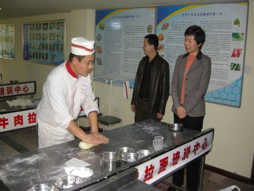 8、兰州市委常委常务副市长在兰州牛肉拉面培训中心、金味德兰州拉面天水路店调研。
