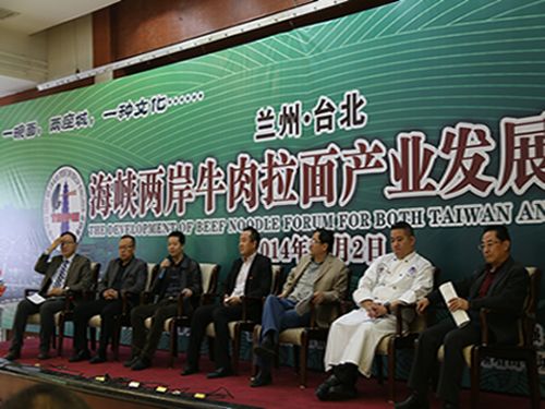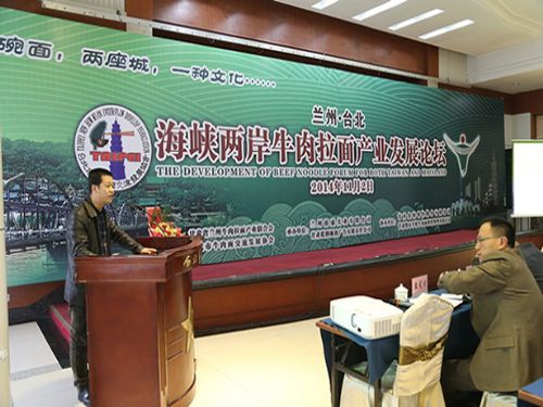 为推动兰州牛肉拉面行业及产业发展,11月2日上午在西北宾馆召开了兰州•台北海峡两岸牛肉拉面产业发展论坛,此次论坛,由甘肃省兰州牛肉拉面产业联合会和台北市牛肉面交流发展协会联合主办,甘肃省兰州拉面产业联合会特邀了台北市牛肉面交流发展协会理事长郑正中先生及一行三人参会。兰州市政府主管部门领导,兰州牛肉拉面相关产业学者、专家、海峡两岸牛肉拉面成功经营者交流发言,当天参会代表100余人参加了论坛交流。据悉,台湾与甘肃两地联合举办牛肉面产业论坛,交流经验、碰撞思想,尚属首次。