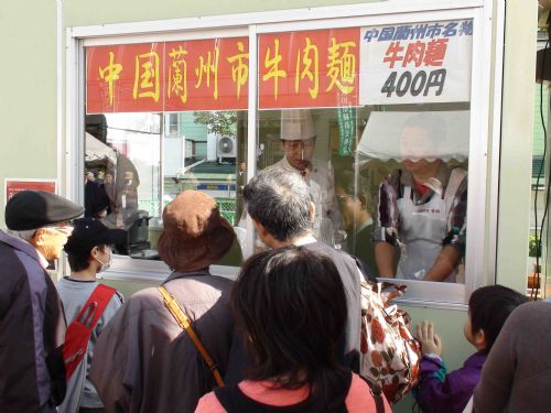 日本秋田市民排队等候品尝兰州牛肉拉面
