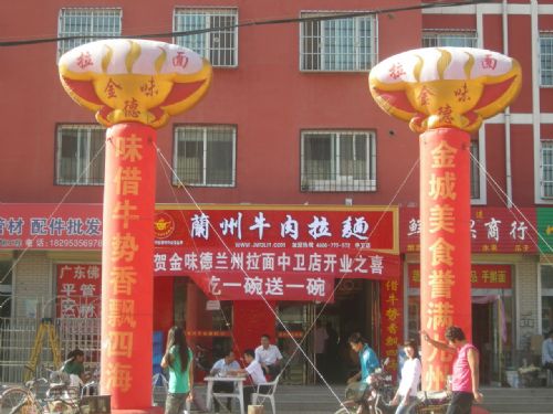 金味德兰州拉面中卫加盟店已隆重开业,该店经营面积100多平方米,装修风格朴素大方,用餐环境优雅,经营品种以传统兰州牛肉拉面系列拉面为主,特色经营品种为酸菜牛肉拉面,兼营炒面条、小菜。届时,欢迎广大顾客前来品尝。