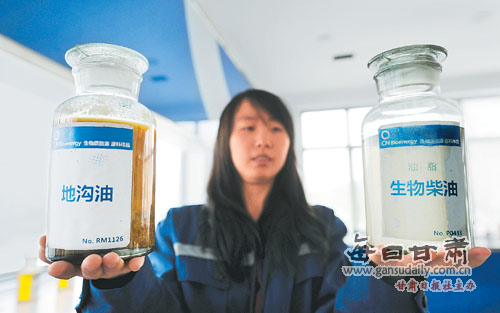 “这是目前国内建成运行的最大的餐厨垃圾处理厂,也是国内第一个采用厌氧发酵工艺技术对餐厨垃圾进行资源化综合利用的餐厨垃圾处理厂。”甘肃驰奈公司总经理杨磊介绍说,通过一系列复杂的流程,他们最大限度地实现餐厨垃圾减量化、无害化、资源化处理:废弃油脂全部工业化利用,生物燃气可产出清洁能源,工艺工程中的废水可循环使用,最后多余的残液还是营养丰富的液体肥。“餐厨垃圾无害化处置不仅能保护环境,也能从根本上杜绝地沟油重返餐桌,但现实情况是,餐厨垃圾的‘回收难’一直困扰着我们。”杨磊说。