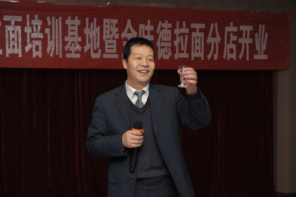 图为兰州牛肉拉面培训基地暨金味德拉面开业时梁总祝词