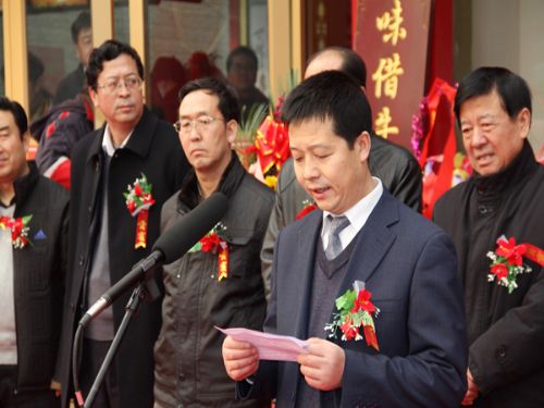 图为梁总为兰州牛肉拉面、金味德宾馆开业时致词