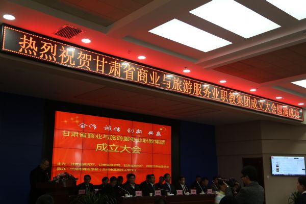 2015年12月25日按照国家教育部精神,甘肃省商业与旅游服务业职业教育集团成立大会今天拉开了帷幕!出席今天成立大会的领导有甘肃省教育厅、甘肃省旅游局、甘肃商务厅、民建甘肃省委以及兰州市有关单位负责人并在大会上作了重要讲话和致辞。