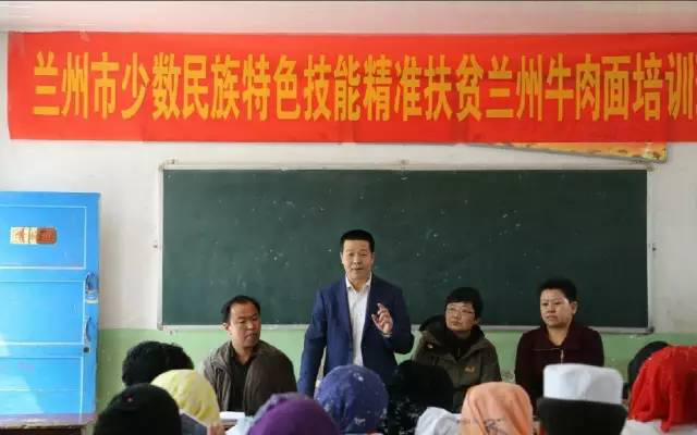 2016年4月13日,由兰州市民族宗教委员会牵头,甘肃兴陇牛肉面职业培训学校开办的兰州市少数民族特色技能精准扶贫兰州牛肉面培训班在兰州新区秦川镇龙西村正式开班。出席此次仪式的主要领导有兰州市民族宗教委员会副主任谢立宏、兰州市民族宗教委员会经济处处长寇志军、甘肃兴陇牛肉面职业培训学校校长梁顺俭、龙西村村委书记火书记、以及来自周边村的40名拉面师学员。