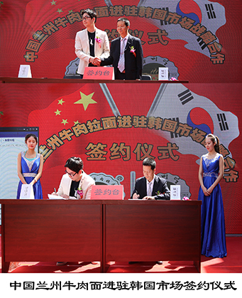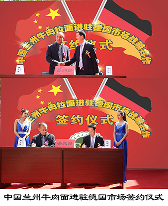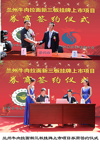 5月9日,由兰州市城关区主办,甘肃金味餐饮有限公司承办的兰州牛肉拉面产业孵化园启动仪式在兰州城关区鱼儿沟基地举行。金味德中国兰州牛肉面体验工坊、中国兰州牛肉拉面培训基地、鑫味德兰州牛肉拉面调味厂、甘肃凯乐(拉面人才)劳务派遣有限公司,兰州牛肉拉面产业创新、创业孵化基地、兰州牛肉拉面新三板挂牌项目等同时签约。兰州牛肉拉面新三板上市挂牌券商签约仪式的举行,标志着兰州牛肉拉面首家“新三板”上市企业即将诞生。来自美国、日本、韩国、加拿大、印度尼西亚、德国等国外合作商,来自国内山东、福建等地合作商以及境内外30余家媒体共同鉴证了这一历史性时刻。