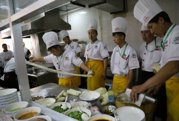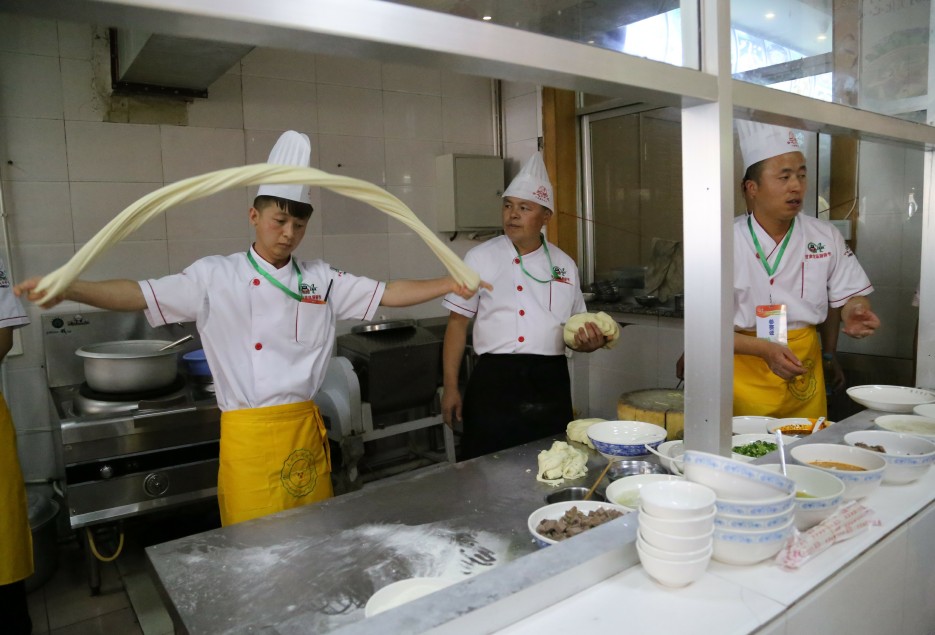 牛肉面作为甘肃省的名片,名声远播海内外。在如此盛大的厨师节大赛上,当然缺少不了牛肉面大比拼,各位拉面师使尽浑身解数,用力的拉扯着属于牛肉面的艺术。