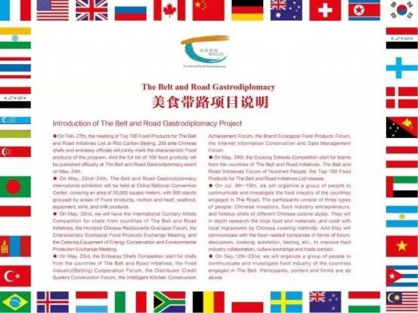 On Feb. 27th, the meeting of Top 100 Food Products for The Belt and Road Initiatives List at Ritz Carlton Beijing, 200 elite Chinese chefs and embassy officials will jointly mark the characteristic Food products of the program. And the full list of 100 food products will be published officially at The Belt and Road Gastrodiplomacy event on May. 24th .
