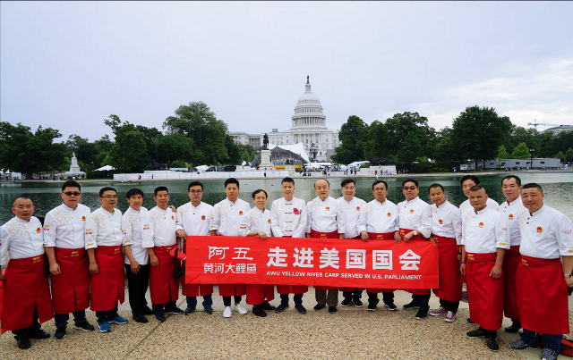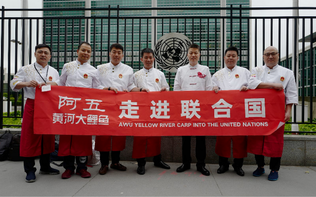 美国当地时间6月1日,中国烹饪大师、阿五黄河大鲤鱼品牌创始人樊胜武及15名大师在纽约联合国总部烹制了红烧鲤鱼、烤鸭、宫爆虾球等几十道中国美食,大家克服场地、设备、食材等种种困难,最终圆满完成了既定的宴会任务,来自世界各国300余位驻联合国官员品尝后,对中国美食赞不绝口。