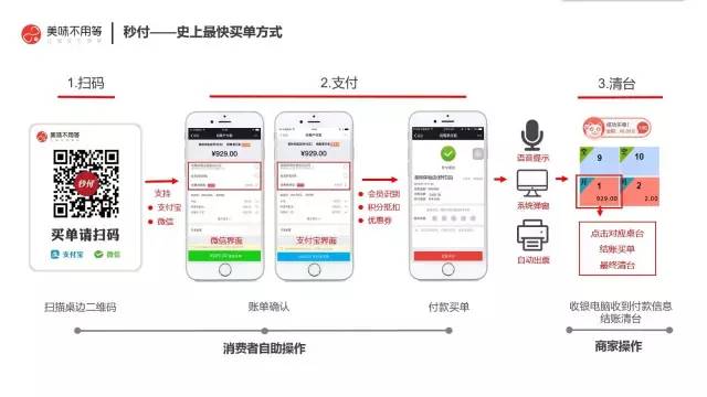 除了排队,预点餐,支付等功能,使用优惠券、积分、储值也都可以在顾客的手机上直接操作,全部流程下来,顾客实现了用餐全流程的自助操作,服务员也从这些环节中解放出来,顾客有了全新的用餐体验,同时也提升了餐厅服务效率。