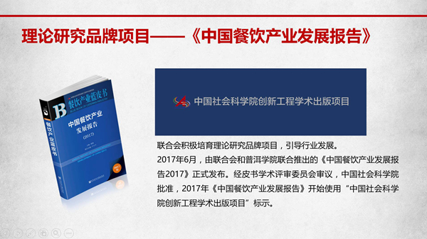 2017年餐饮产业蓝皮书在谋篇布局上紧跟政策导向、聚焦产业前沿,在选题立意上围绕热点焦点、追求实践价值,通过分析、探讨和研判,促进政府、协会、研究机构、行业企业、餐饮院校协同联动,共同为餐饮产业的健康发展发力。