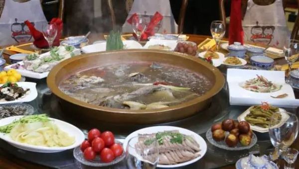 当摄制组看到桌子中间那一口金灿灿的铜锅时,便已经深深体会到了西北人,西北美食的那一份粗犷。锅中滚滚的热汤汤中,包含了牛头,牛舌,牛尾,牛腩以及牛肚等。而这每一个部位在兰州当地人的文化中都有着不同的含义,比如牛头就代表着“鸿运当头”而这牛尾便代表着“节节高升”,这些有趣的含义为这段体验之旅更添了一份色彩。