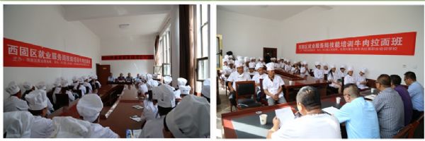 为进一步提升西固区河口古镇旅游景区“农家乐”厨艺技能,打造“美丽古镇”“古镇人家”,让古镇餐饮更贴近旅游市场需求,6月19日上午,西固区就业服务局和甘肃兴陇兰州牛肉拉面职业培训学校联合为河口古镇经营户和富余劳动力打造的牛肉拉面技能培训班如期开班了。