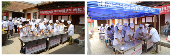 甘肃兴陇兰州牛肉拉面职业培训学校采取的是现场培训,就近授课,解决农民群众求学难,授教难、从业难的问题,一直以来深受农民欢迎。此次在西固区河口镇开班培训,村民的学习热情依旧高涨,尽管艳阳高照,依旧按时上课,根据老师的示范认真练习。