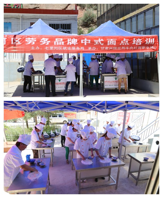 七里河区劳务品牌技能培训如火如荼。2016年7月在阿干镇坪岭村进行劳务品牌牛肉面技能培训之后,效果明显,深受村民欢迎。时隔一年,7月11日,七里河区就业服务局和甘肃兴陇兰州牛肉拉面职业培训学校联合打造的又一劳务品牌培训——中式面点培训班在阿干镇坪岭村如期开班了。