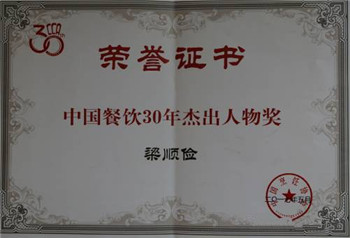 2017年金味德品牌创始人梁顺俭被中国烹饪协会评为中国餐饮三十年杰出人物。