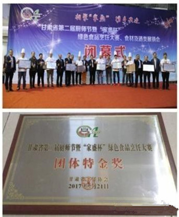 甘肃省第二届“厨师节”暨甘肃省“家盛”杯 绿色食品烹饪大赛,金味德获得团体特金奖。