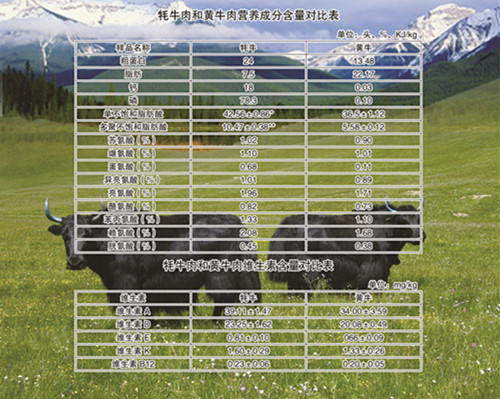 “牦牛”,作为世界三大高寒动物之一,属半野生天然绿色食品,富含蛋白质和氨基酸,以及胡萝卜素、钙、磷等微量元素,脂肪含量特别低,热量特别高,对增强人体抗病力、细胞活力和器官功能均有显著作用。