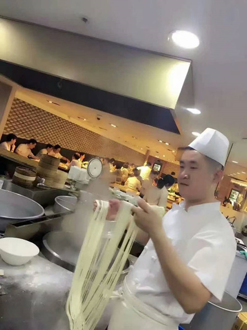 一直记得那天厨师拉面的姿态,像是赋予了拉面一种舞动。他双手抓住面剂子两头,一拉一折,一抻一扯,开开合合,拉出来的面条粗细均匀、不粘不断,在面条下锅前,还要展开臂膀,把面条在案板上甩两下,案子上的面粉就象云雾一样散开来,然后面条嗖的一下就被投到锅里,莲花一样在沸腾的水里旋转……整个拉面过程只有几秒钟,却叫人眼花缭乱。