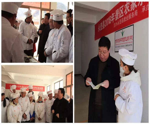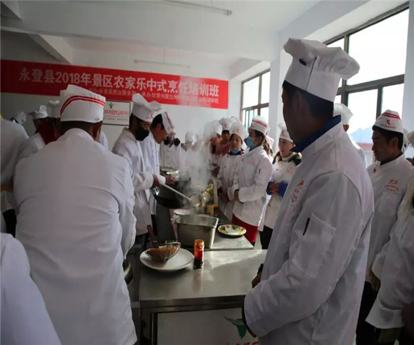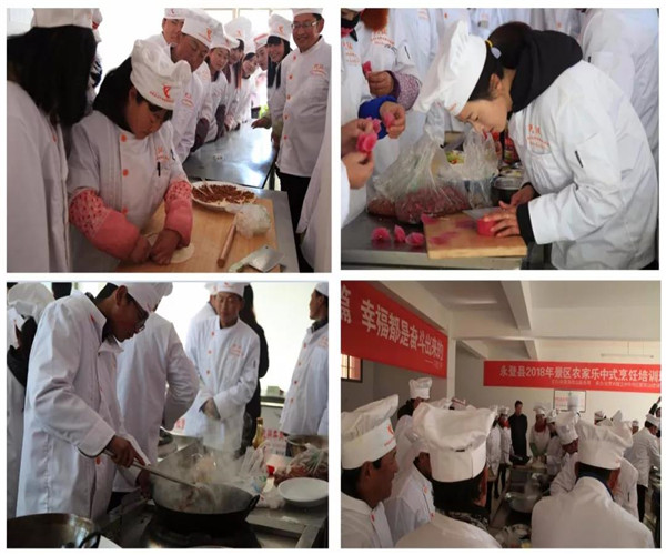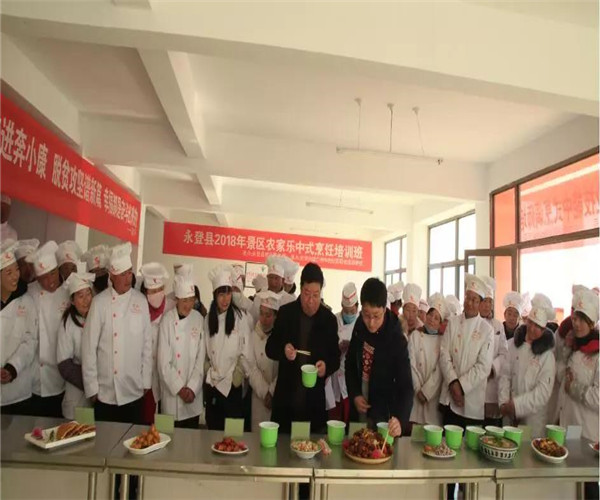 为进一步提升武胜驿镇石家滩村旅游景区“农家乐”厨艺技能,开发创新“农家乐”菜式、菜品的新特色,全面提升“农家乐”厨师技能水平和整体形象,打造真正属于当地的农家乐特色餐饮, 促进景区餐饮业健康发展,提高村民收入。由永登县就业服务局主办,甘肃兴陇兰州牛肉拉面职业培训学校承办的永登县2018年景区农家乐中式烹饪培训班于1月29 日开班,至2月6日圆满结业,永登县就业局陈局长等领导参加了结业典礼。