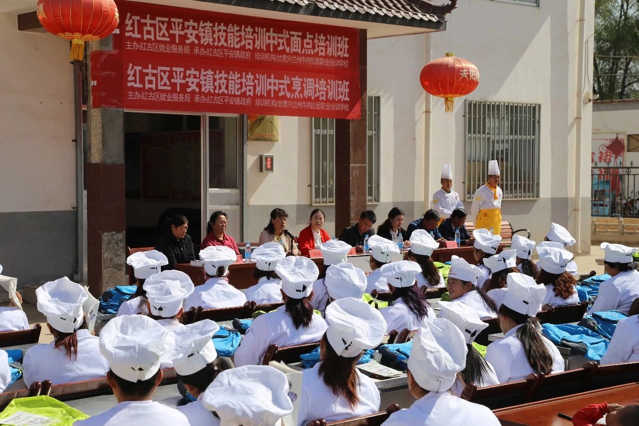 4月8日,红古区平安镇农村转移就业劳动者就业技能(中式面点、中式烹调)培训班在平安镇复兴村正式开班。区就业局局长陈伟,副局长张卫霞,平安镇副镇长颜瑜,复兴村党支部书记杨世杰,村主任张忠元,兰州兴陇牛肉面培训学校副校长张桂梅以及复兴村参加培训的120名农村富余劳动力参加了开班仪式。