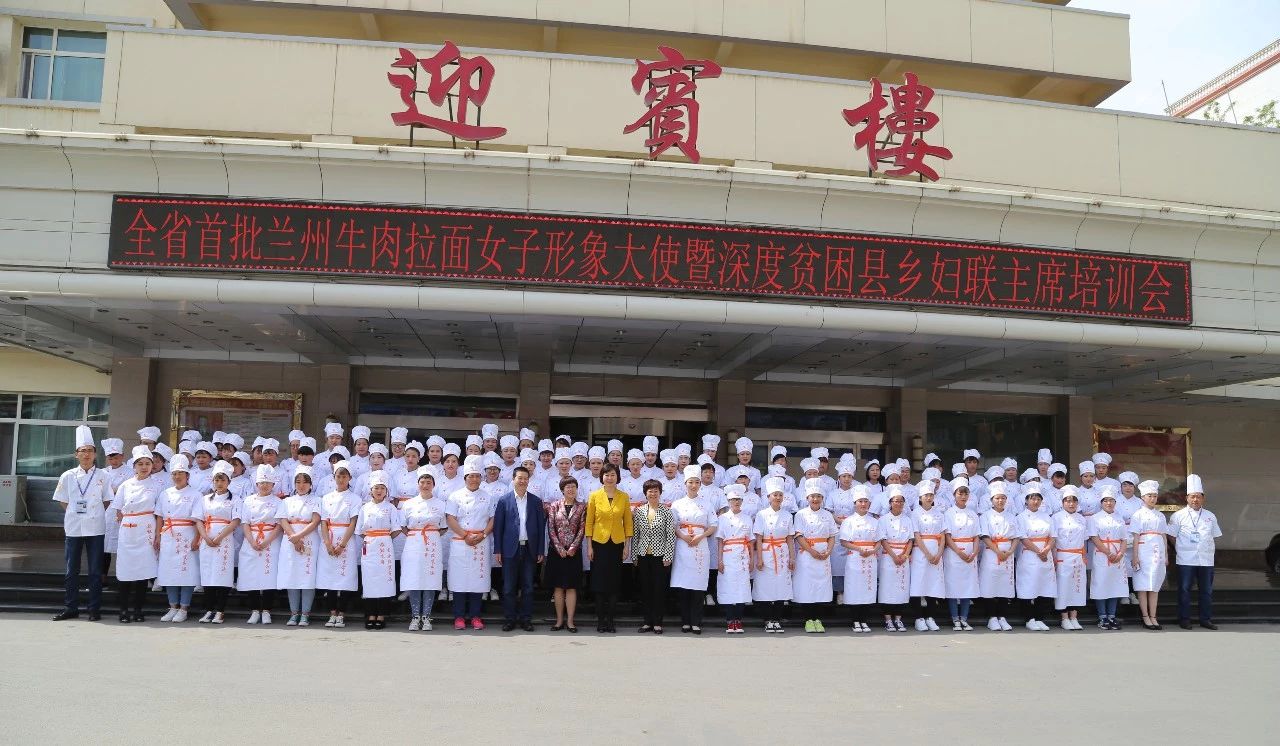5月4号,甘肃首批兰州牛肉面女子拉面形象大使培训启动仪式暨深度贫困县乡妇联主席工作培训会正式启动。甘肃省妇联党组书记、主席周丽宁,甘肃省委农工办主任李秀娟,甘肃省妇联党组成员、副主席李娟,甘肃兴陇兰州牛肉拉面职业培训学校校长、兴陇兰州牛肉拉面国际商学院副院长梁顺俭出席了此次启动仪式。