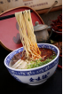 讲究"三遍水,三遍灰,九九八十一遍揉"。其中的灰,实际上是碱,却又不是普通的碱,是用戈壁滩所产的蓬草烧制出来的碱性物质,俗称蓬灰,加进面里,不仅使面有了一种特殊的香味,而且拉出来的面条爽滑透黄、筋道有劲。
