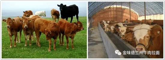 我们有啥不一样?兰州牛肉面里头的牛肉,用的都是养殖的肉牛、大黄牛,熬汤这些更不用说啦,用的也都是咱们的肉牛、黄牛兄弟们。