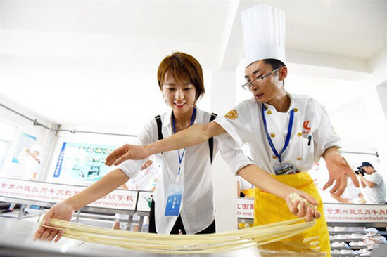 7月19日下午,由每日甘肃网和兰州市委网信办组织的“2018年全国重点网络媒体、网络大V甘肃行”采访团走进金味德兰州拉面文化产业集团的牛肉面博物馆和体验工坊,体验兰州拉面的传统制作技艺,身临其境地体验兰州牛肉面制作中的独特魅力。