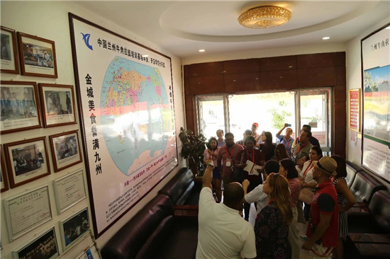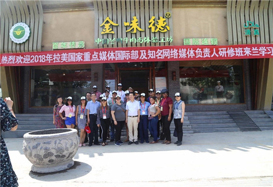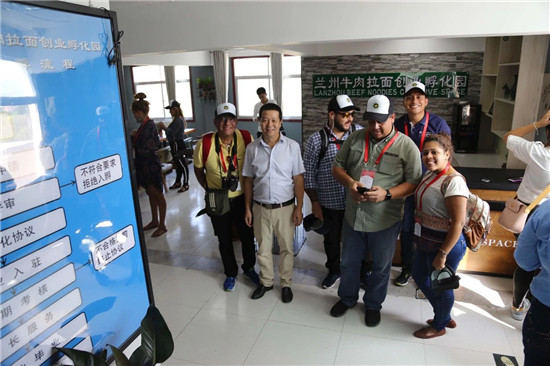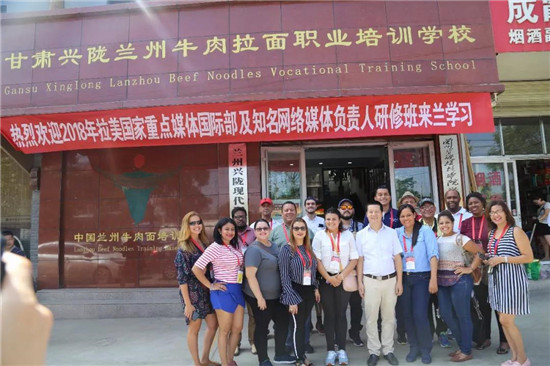 7月31日,“2018年拉美国家重点媒体国际部及知名网络媒体负责人研修班”学员在甘肃省委宣传部,兰州市委宣传部外宣办及兰州牛肉拉面行业协会领导的陪同下分别来到了中国兰州牛肉拉面体验工坊、兰州牛肉拉面创业孵化园、兴陇兰州牛肉拉面国际商学院、甘肃兴陇兰州牛肉拉面职业培训学校参观采访。