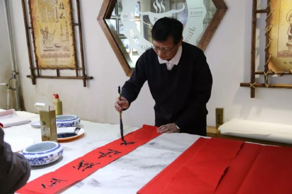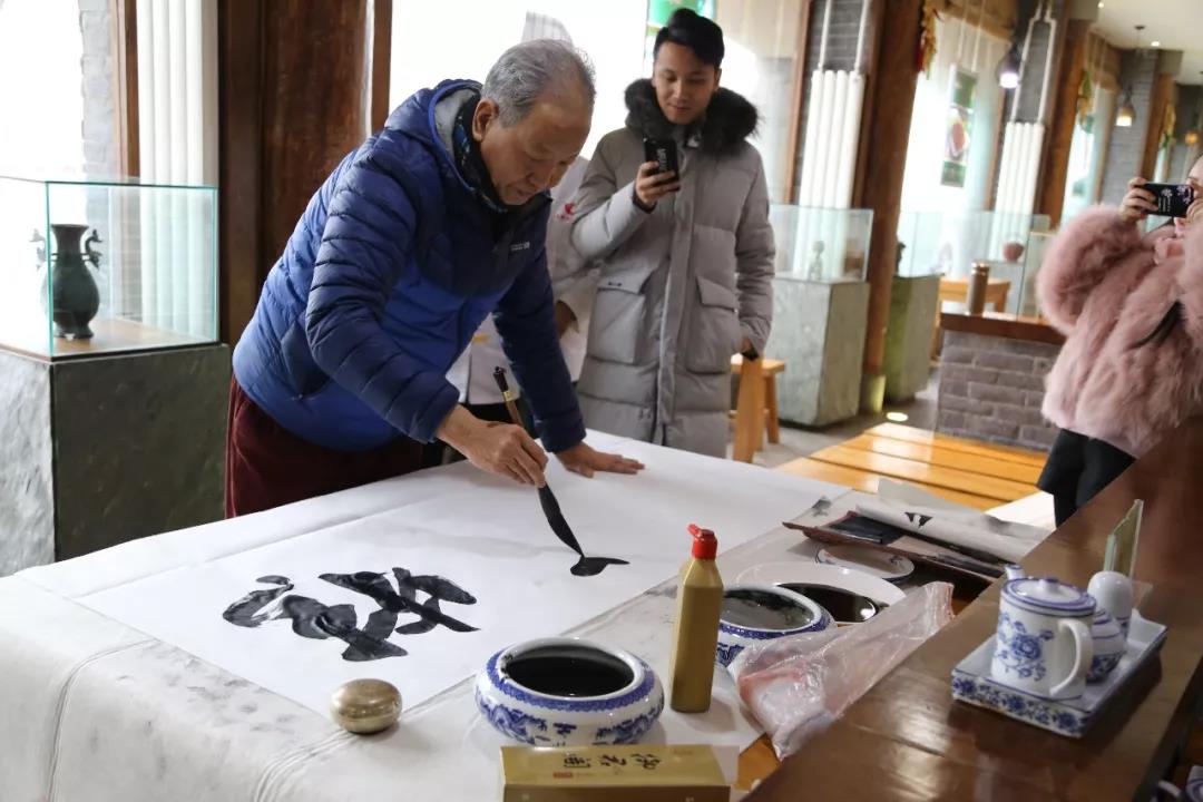 在活动现场,书画家与公司员工欢聚一堂、共迎新春。各位书画家饱蘸激情、挥毫泼墨,现场进行创作,画笔浓墨重彩地描绘着自己的灵感,毛笔挥毫自如精心书写着对生活的热爱和感悟,一幅幅风格迥异的书画作品呈现在众人面前,宽敞明亮的工坊里翰墨飘香,热闹非凡。