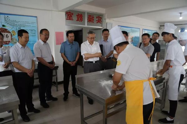 2019年7月2日上午,人社部党组织成员、副部长汤涛,职业能力建设司司长张立新,职业能力建设指导中心副主任章谦,甘肃省委组织部副部长、省人社厅厅长贾庭权,副厅长王丽萍,兰州市副市长杜正喜,市人社局副局长臧晓平等领导一行莅临甘肃兴陇兰州牛肉拉面职业培训学校调研。