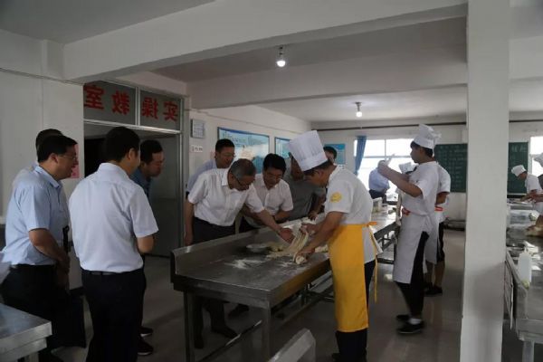 甘肃兴陇兰州牛肉拉面职业培训学校校长、金味德拉面文化产业集团董事长梁顺俭向各位领导汇报了学校发展历程和产业化发展,并带人社调研组领导一行参观了拉面培训学校,领导对甘肃兴陇兰州牛肉拉面职业培训学校给予了高度评价,鼓励兴陇拉面培训学校不仅要多为社会创造就业平台,更要有领航建设兰州牛肉拉面产业链的精神。同时要进一步发展国内各省市及海外市场,提高自身竞争优势。