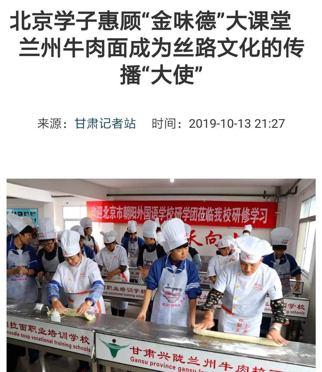 兰州牛肉拉面享誉世界,10月12-13日两天,来自北京朝阳外国语学校的400多名师生走进兰州金味德,感受兰州牛肉面背后的历史文化,探秘丝绸之路博大精深。获得多家媒体争相报道。
