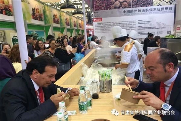4月8日(展会第一天):主要进行兰州牛肉拉面的制作工艺展示,分为早中晚三次现场进行兰州牛肉拉面各种工艺的演示。并且在中午,将兰州牛肉拉面与西班牙、意大利的面酱进行结合,现场品尝“中西结合”的酱拌面。