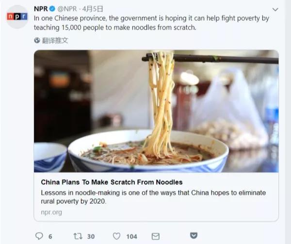 据美国全国公共广播电台网站(NPR)4月4日报道,“授人以鱼不如授人以渔”这句谚语在中国有了新的解读:给一个人一碗面,你可以让他吃饱一天;教一个人如何做面条,你可以让他一辈子都吃饱。