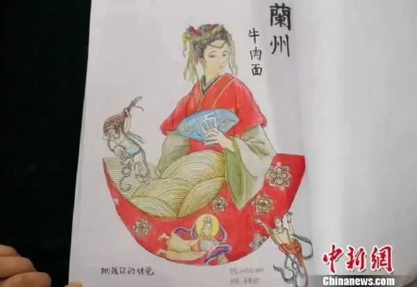 图为将兰州牛肉面融入敦煌飞天创作。