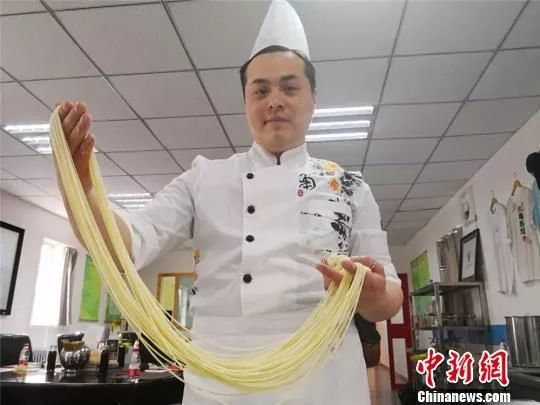 图为来自西班牙的小伙Terry Wu展示拉面技艺。