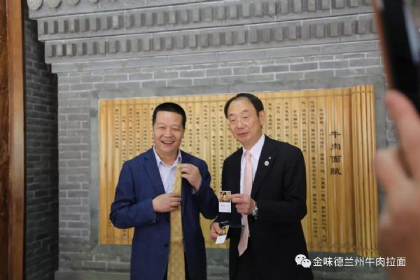 5月19日,日本秋田市长一行,莅临中国兰州牛肉拉面国际联盟·金味德拉面文化产业集团考察交流,甘肃金味德拉面文化产业有限公司董事长、兰州牛肉拉面国际联盟主席—梁顺俭接待了代表团全体人员。