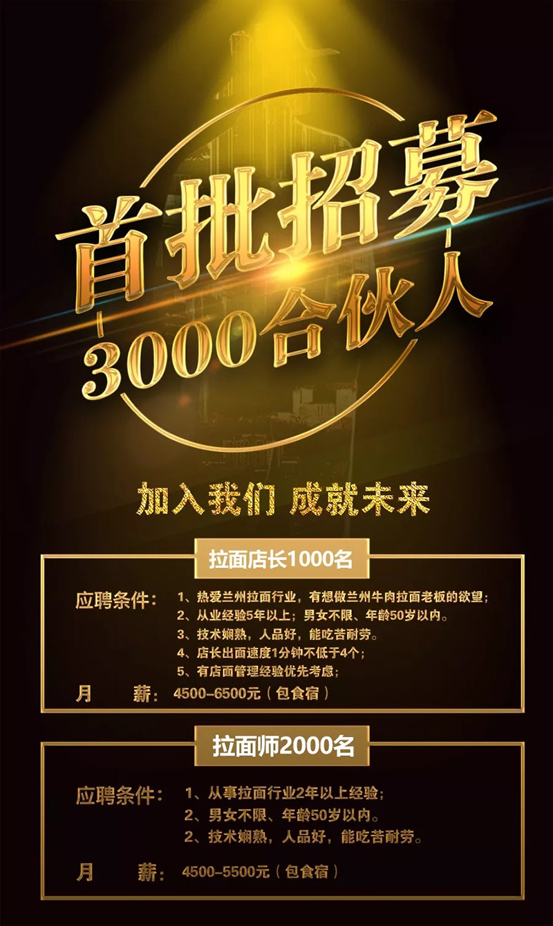 现全国招募拉面师3000名全国高校窗口就业,加入我们,共同成就未来!