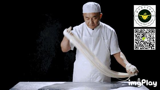 拉面师傅专门从兰州而来,功夫了得。不仅臂力过人,而且对拉面力道的控制刚中带柔。下到锅里依旧韧性十足!