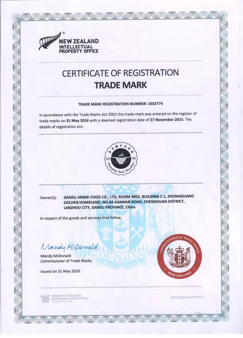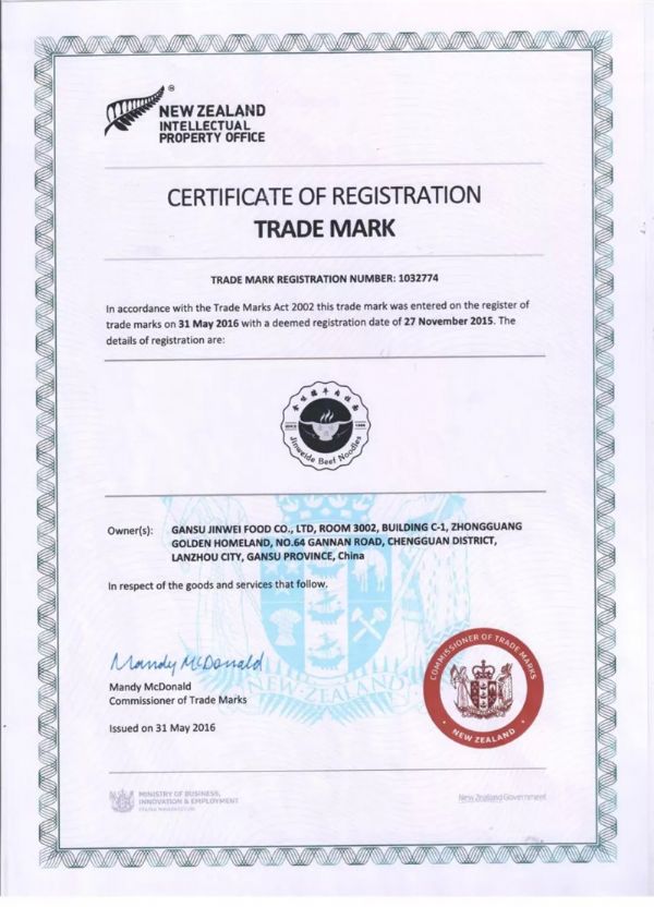 金味德牛肉拉面品牌在中国兰州发展10年以来,在全球四十多个国家注册商标,近年来借助国家“一带一路”的发展机遇,积极推动中国饮食文化走向世界,在40多个国家注册商标,相继在韩国、日本、美国、奥大利亚等多个国家开展连锁业务,成为中国兰州牛肉拉面国际连锁领军品牌,引起越来越多国家强烈响应。2018年10月金味德新西兰公司连锁店同时启动,开展新西兰全国金味德牛肉拉面连锁业务,将为新西兰从事兰州牛肉拉面行业的同仁提供技能培训,人才供应,技术输出,原材料供应,模式复制等全产业连服务。