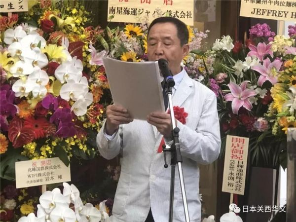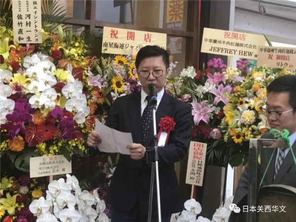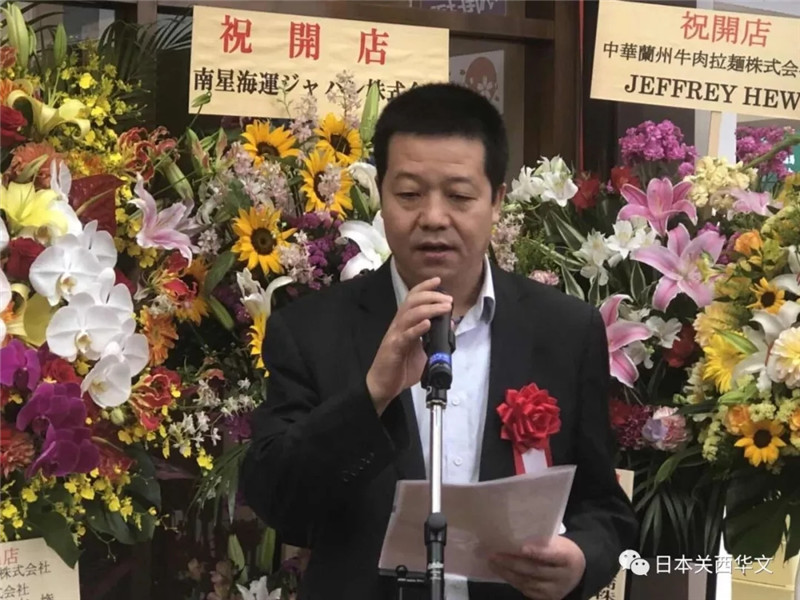 亲临现场的两位嘉宾,日神通商株式会社社长田国辉发表了讲话,而国际饮食养生研究会副会长侯同明则宣读了该会会长张文彦的贺信。在贺信里,张文彦会长表示:兰州拉面历史悠久,味美,爽口,实惠,在中国被誉为“华夏第一面”,深受世界各是顾客欢迎。这次兰州拉面落地神户,必将造福一方并赢得食客青睐。