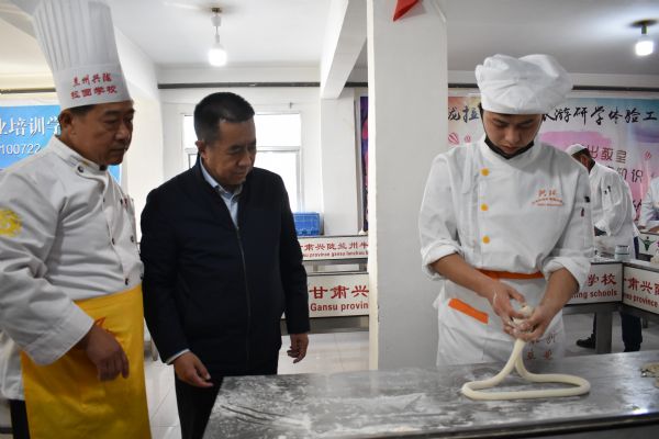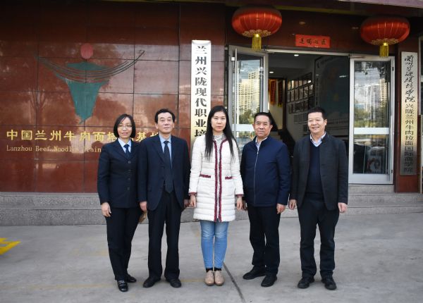 调研组来到甘肃兴陇兰州牛肉拉面职业培训学校了解学校的发展历程、未来愿景以及扶贫情况。